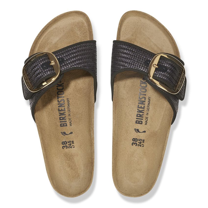 Birkenstock MADRID BIG BUCKLE 1029053 Noir | Raffia Textile Largeur Étroite