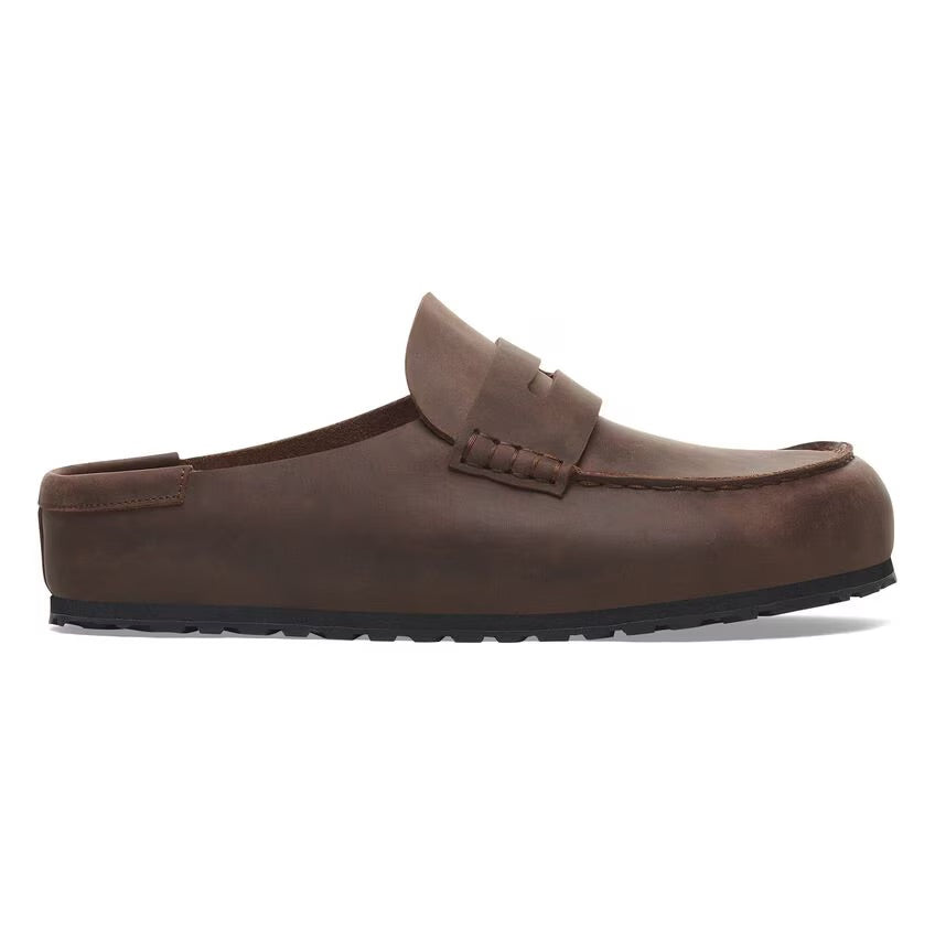 Élevé, tout en bas. Le sabot Naples, inspiré des mocassins, est en cuir huilé avec une nouvelle semelle intercalaire entièrement enveloppée. Il est doté d'une languette et de surpiqûres caractéristiques pour un style qui va du bureau au dîner, ainsi que d'une assise plantaire profilée qui vous accompagne dans toutes vos activités.