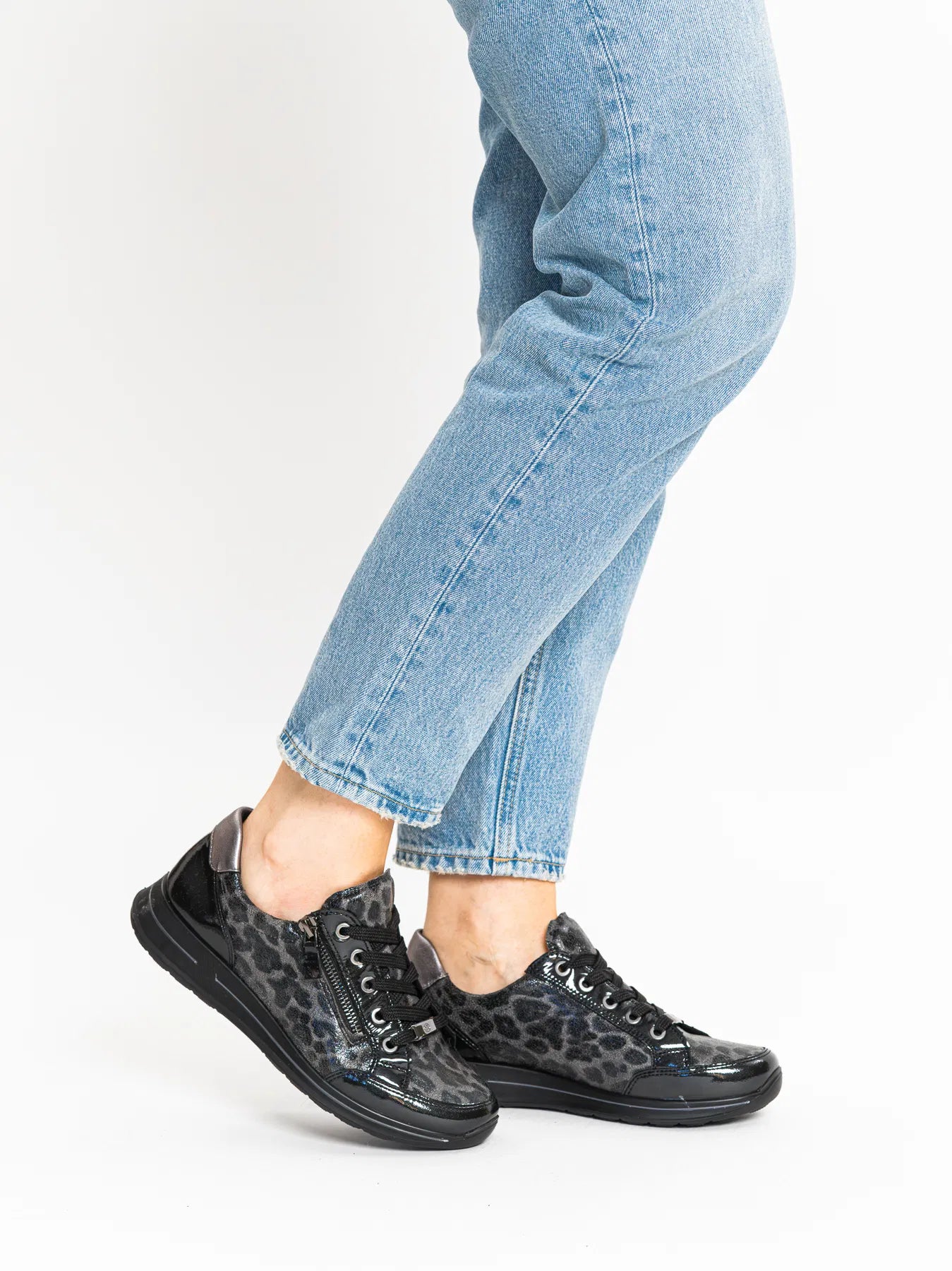 The comfortable, sporty sneakers in high-quality leather feature a combination of textile and soft terry cloth on the inside, which ensures a pleasant foot climate as it absorbs moisture perfectly and dries quickly. The removable arch is also covered with terry cloth and can be replaced at any time with other insoles. What's more, the soft padding on the edge of the upper prevents unpleasant pressure points. Thanks to lacing and an additional zipper, the shoe can be perfectly adapted to your own needs. Last but not least, the trendy, non-slip wedge sole ensures a secure fit. Sneakers are the ideal companions for leisure activities.
