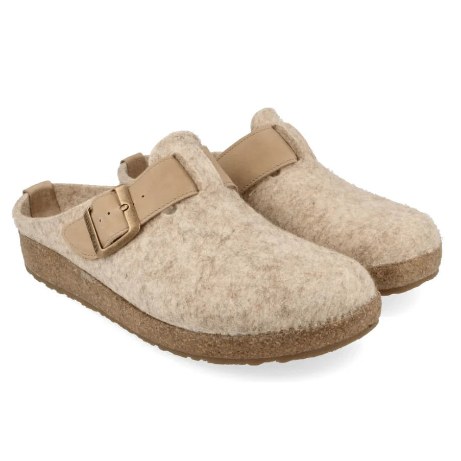 Alliez style et confort avec les sabots en feutre Haflinger Buckle. Dotés d'une boucle tendance et d'une bride en cuir.