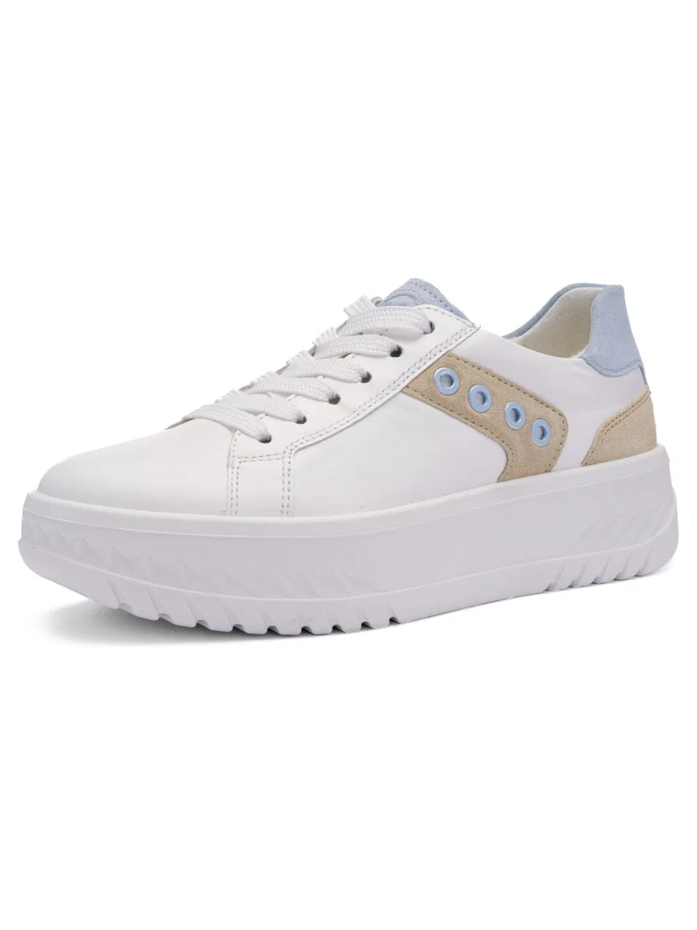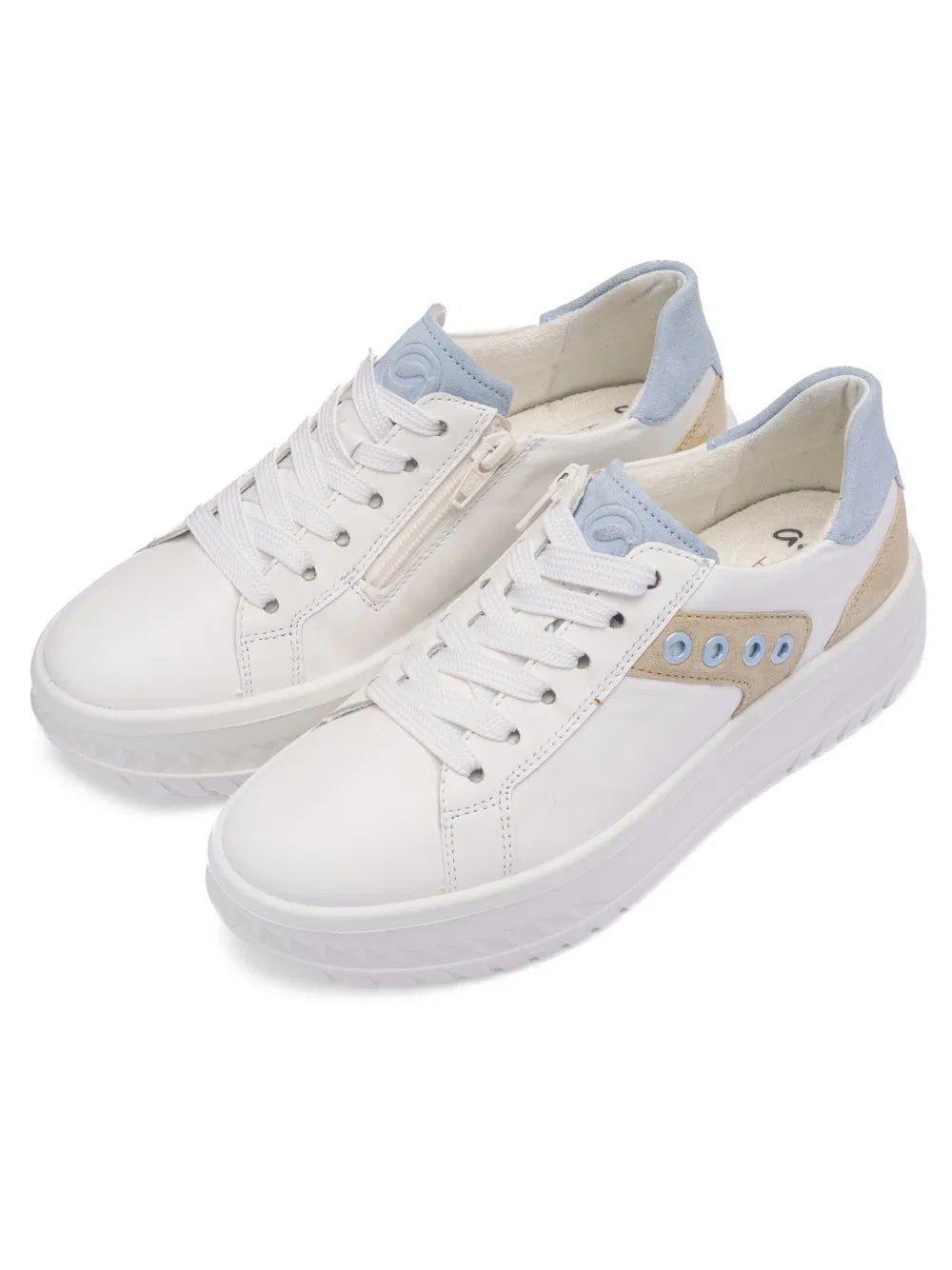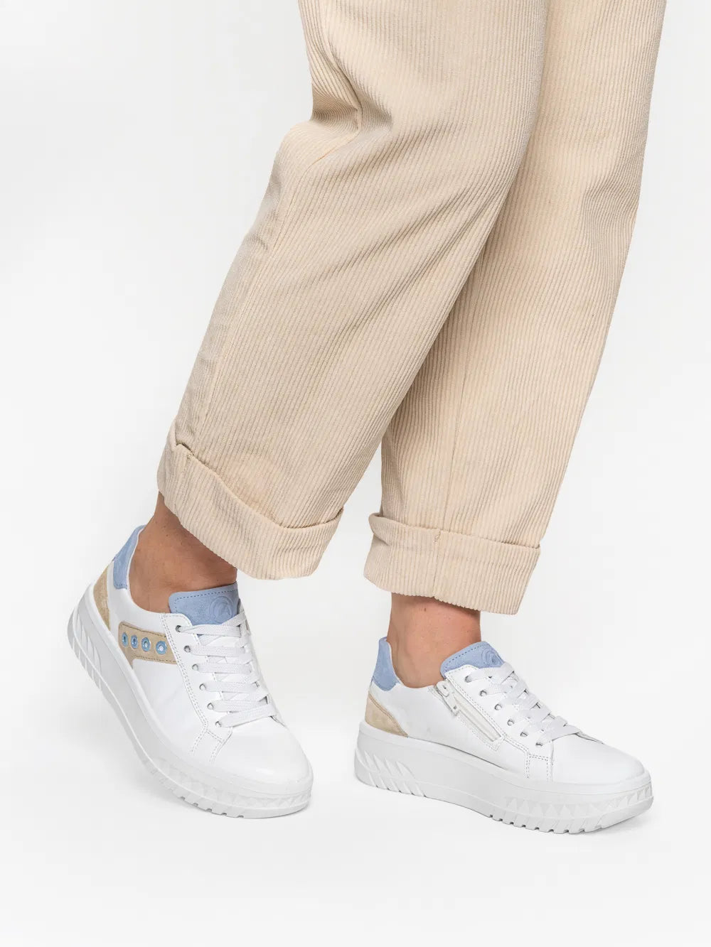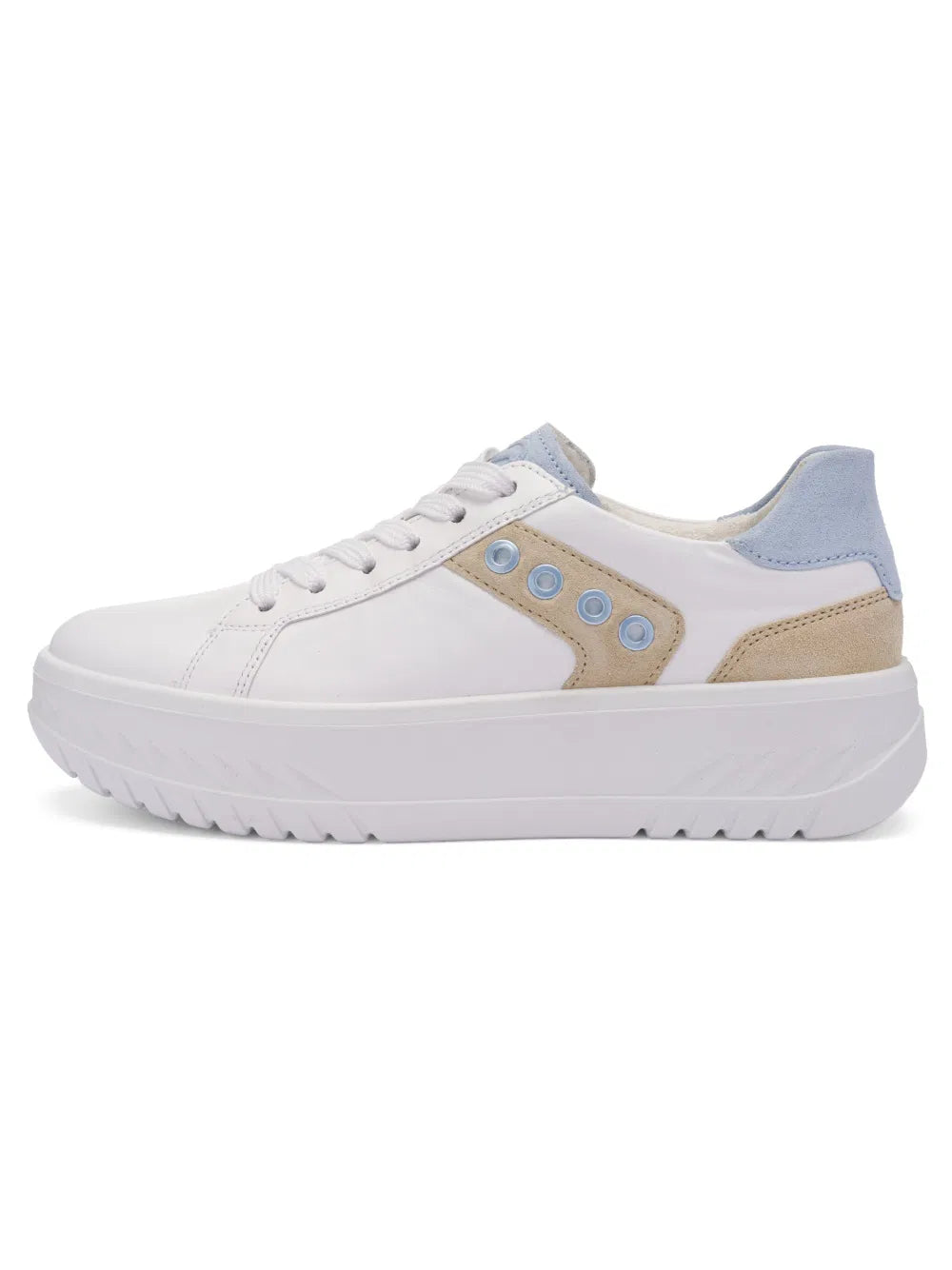 Cette basket sportive est fabriquée en cuir souple et doux, ce qui la rend très confortable à porter. Le bord rembourré de la tige évite les points de pression désagréables, tandis que le laçage pratique permet un ajustement parfait au pied. Les lacets larges confèrent à la chaussure un look tendance et une fermeture éclair supplémentaire à l'intérieur facilite l'enfilage et le retrait. À l'intérieur, la chaussure séduit par sa doublure en tissu éponge doux à base de fibres de bambou. Elle garde les pieds agréablement au chaud et au sec, absorbe efficacement l'humidité et assure un excellent confort. La semelle intérieure rembourrée et amovible est également recouverte de tissu éponge et offre un confort supplémentaire. La technologie innovante HighSoft garantit une démarche souple et sans fatigue, pour un confort de marche particulièrement agréable. La semelle compensée épaisse confère à la basket une touche sportive et tendance. Les quatre anneaux décoratifs constituent un détail particulier qui confère à la chaussure un petit plus et en fait un véritable accroche-regard. Avec cette basket tendance, les femmes soucieuses de la mode sont parfaitement équipées : elle est à la fois confortable, élégante et fonctionnelle.