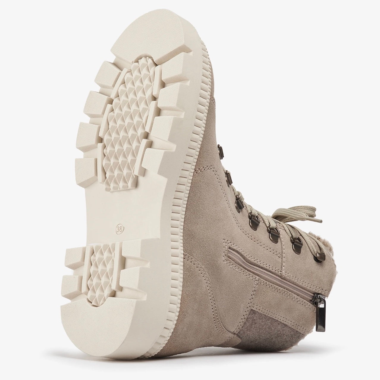 La Praga est une botte chic qui allie design moderne et matériaux de haute qualité. La tige est confectionnée en cuir hydro suède, complétée par un impressionnant col en laine bouillie. À l'intérieur, une luxueuse doublure en laine vierge et bouclée assure un confort et une chaleur maximale. De plus, elle est équipée d'une fermeture éclair robuste avec soufflet ce qui facilite l'enfilage. La Praga est également dotée d'une semelle standard robuste CHUNKY, offrant une adhérence et une stabilité exceptionnelles par tous les temps. Avec son apparence élégante et ses caractéristiques pratiques, la Praga est le choix parfait pour vous accompagner de l’automne à l'hiver.