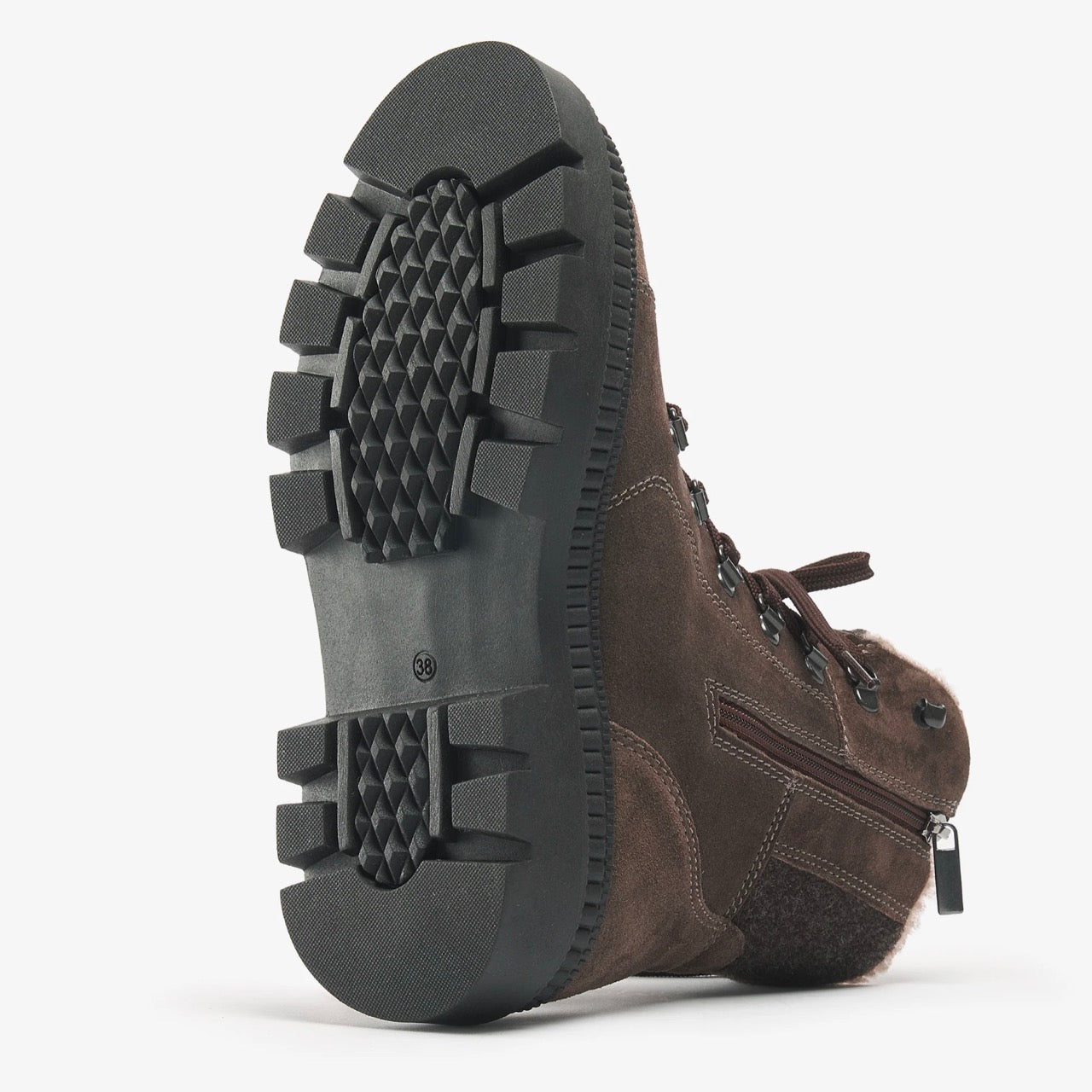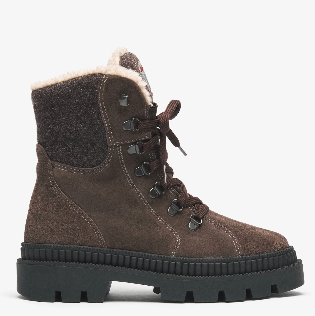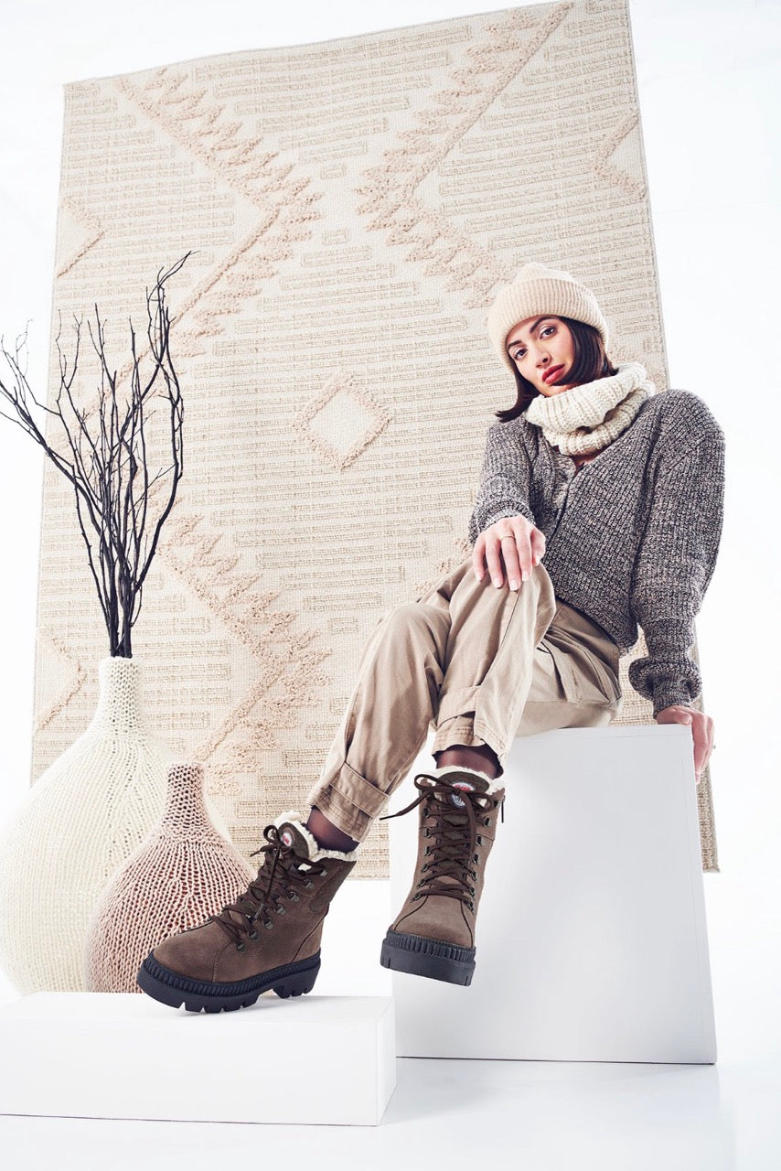 La Praga est une botte chic qui allie design moderne et matériaux de haute qualité. La tige est confectionnée en cuir hydro suède, complétée par un impressionnant col en laine bouillie. À l'intérieur, une luxueuse doublure en laine vierge et bouclée assure un confort et une chaleur maximale. De plus, elle est équipée d'une fermeture éclair robuste avec soufflet ce qui facilite l'enfilage. La Praga est également dotée d'une semelle standard robuste CHUNKY, offrant une adhérence et une stabilité exceptionnelles par tous les temps. Avec son apparence élégante et ses caractéristiques pratiques, la Praga est le choix parfait pour vous accompagner de l’automne à l'hiver.
