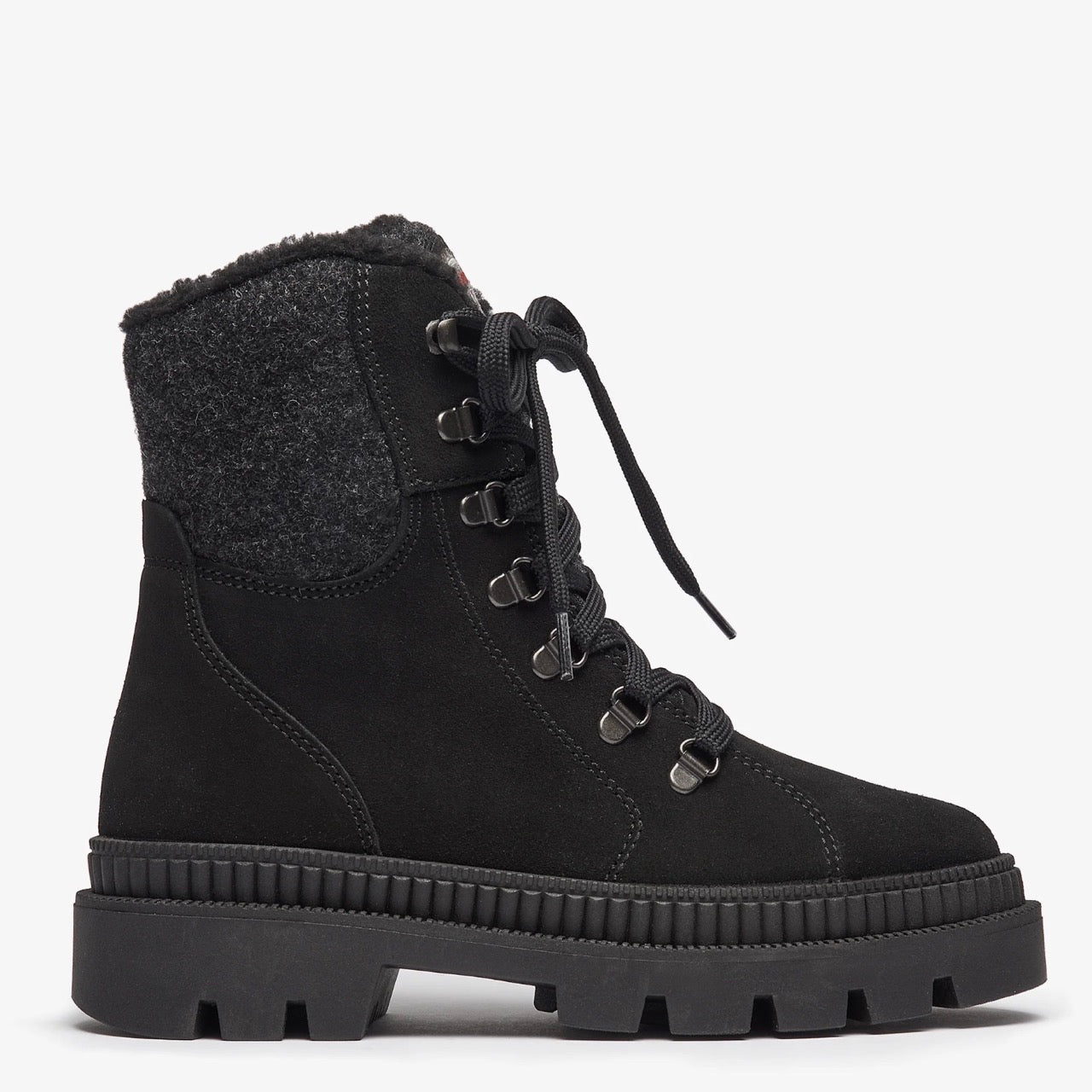 La Praga est une botte chic qui allie design moderne et matériaux de haute qualité. La tige est confectionnée en cuir hydro suède, complétée par un impressionnant col en laine bouillie. À l'intérieur, une luxueuse doublure en laine vierge et bouclée assure un confort et une chaleur maximale. De plus, elle est équipée d'une fermeture éclair robuste avec soufflet ce qui facilite l'enfilage. La Praga est également dotée d'une semelle standard robuste CHUNKY, offrant une adhérence et une stabilité exceptionnelles par tous les temps. Avec son apparence élégante et ses caractéristiques pratiques, la Praga est le choix parfait pour vous accompagner de l’automne à l'hiver.