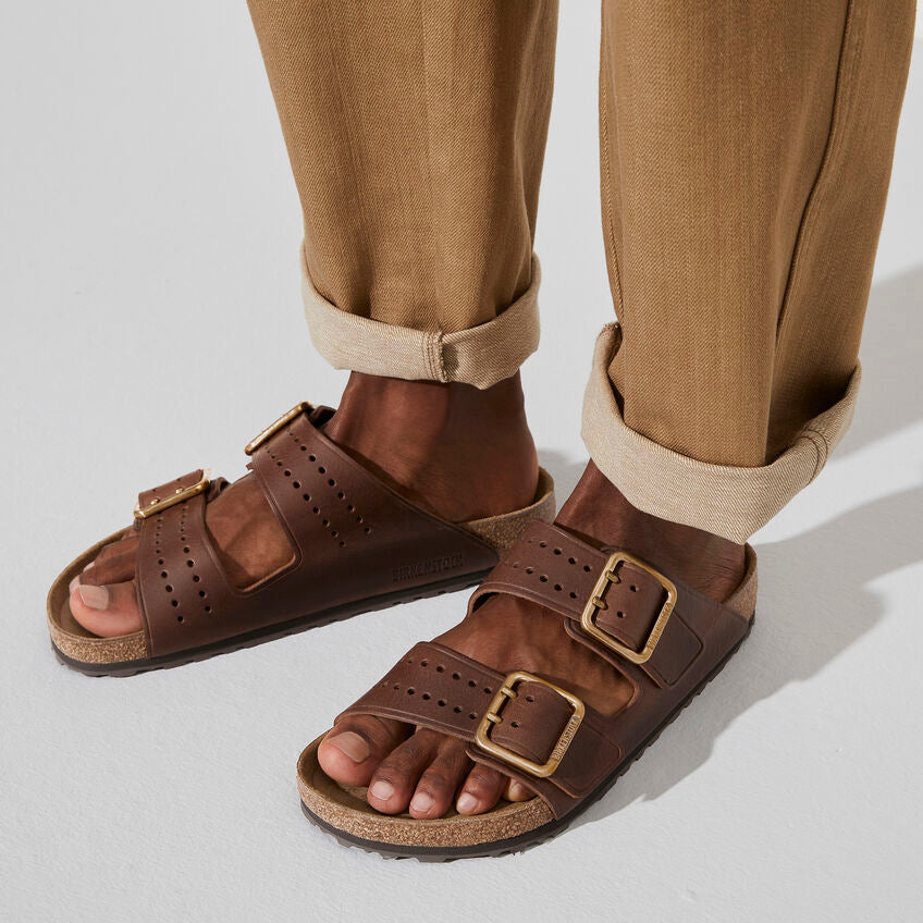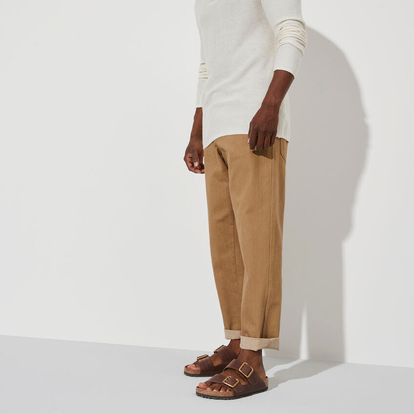 Le légendaire modèle à deux brides de BIRKENSTOCK - l'Arizona. Un style iconique avec le confort caractéristique de la semelle BIRKENSTOCK. Cette version moderne de notre Arizona classique est dotée d'une boucle tonale à deux branches en laiton et d'une semelle extérieure en caoutchouc à forte adhérence. La semelle intermédiaire amortissante en EVA favorise la stabilité et le confort. Fabriqué en cuir de première qualité avec gaufrage sur les bords