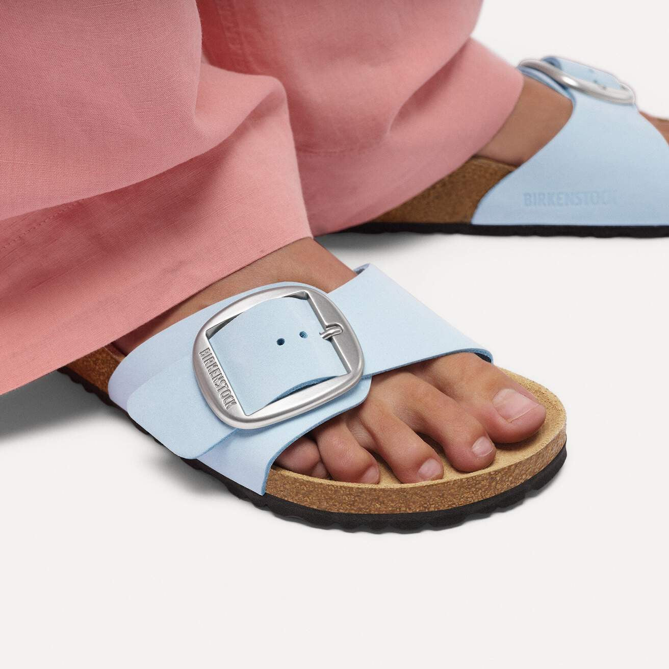Icône depuis 1963, la sandale Madrid a redéfini le look slip-on avec une seule bride. Cette saison, le cuir nubuck souple s'associe parfaitement à une grosse boucle mate dorée, de taille plus importante pour faire une déclaration.