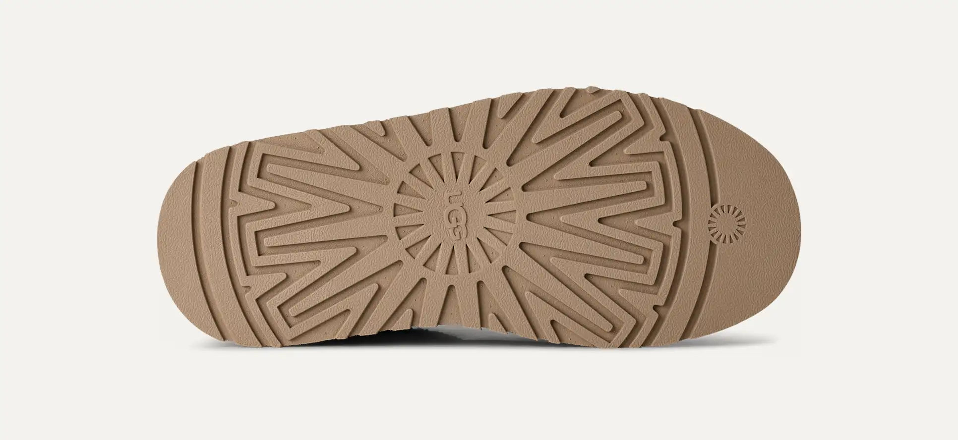 • Logo UGG®, estampé à chaud, Étiquette tissée avec le logo UGG® sur la semelle intérieure.