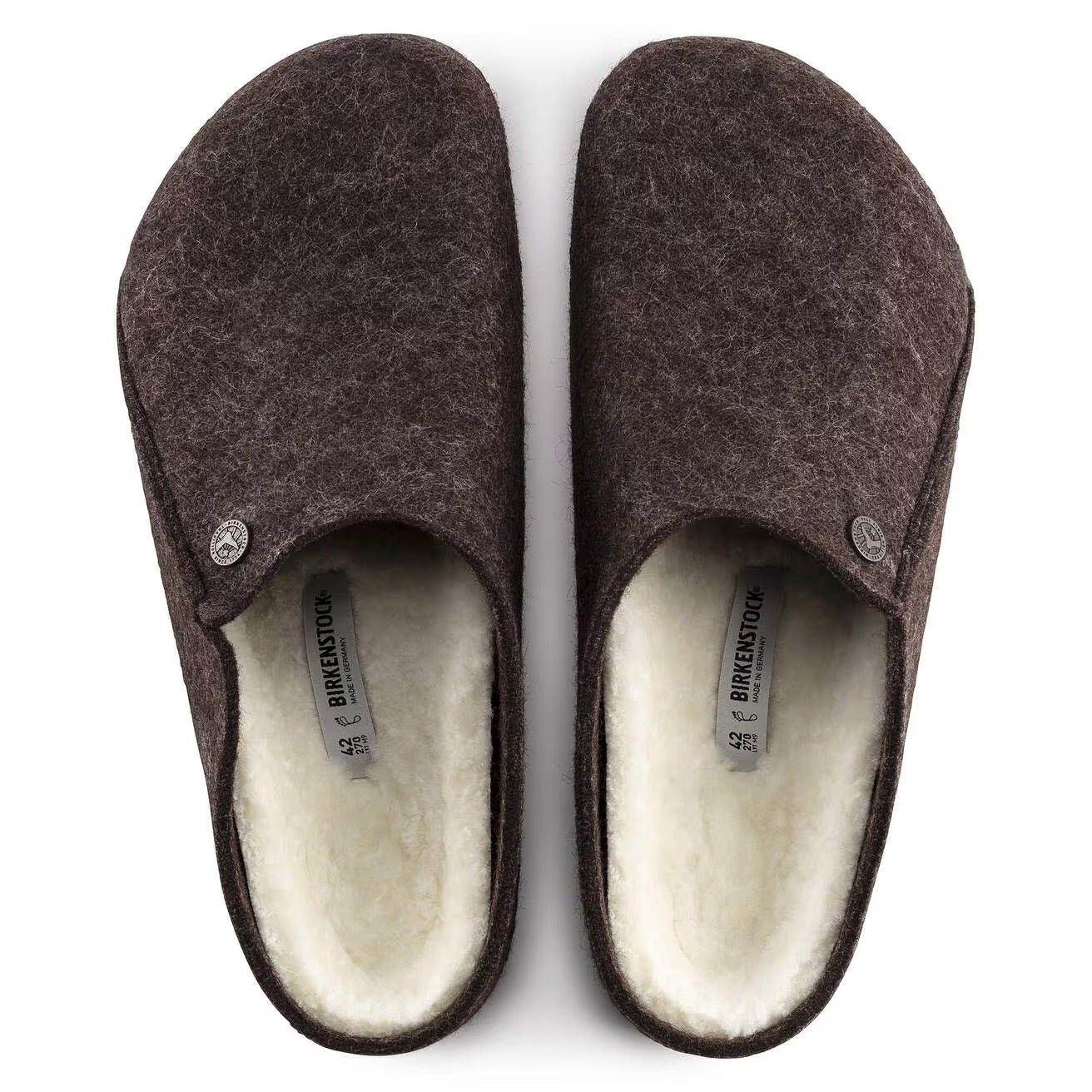 The BIRKENSTOCK Zermatt is our first true slipper. It features the iconic cork latex footbed, and to keep you extra cozy, it’s fully lined in genuine shearling that will keep your feet warm all winter long. The upper consists of soft genuine wool.