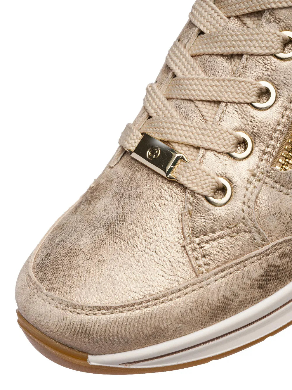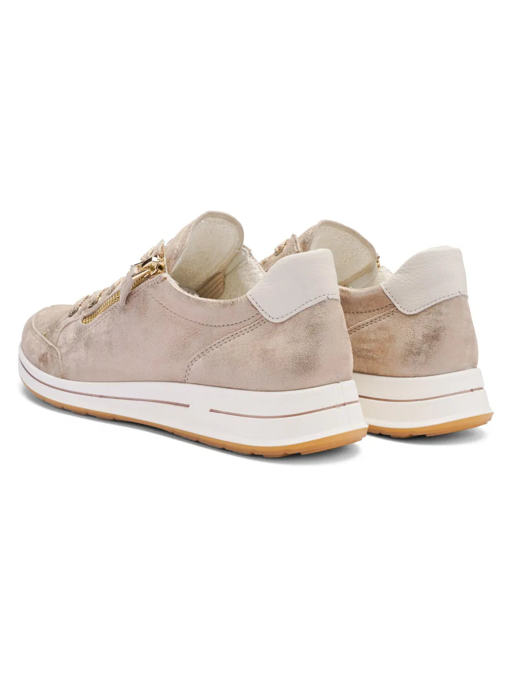 The comfortable, sporty sneakers in high-quality leather feature a combination of textile and soft terry cloth on the inside, which ensures a pleasant foot climate as it absorbs moisture perfectly and dries quickly. The removable arch is also covered with terry cloth and can be replaced at any time with other insoles. What's more, the soft padding on the edge of the upper prevents unpleasant pressure points. Thanks to lacing and an additional zipper, the shoe can be perfectly adapted to your own needs. Last but not least, the trendy, non-slip wedge sole ensures a secure fit. Sneakers are the ideal companions for leisure activities.
