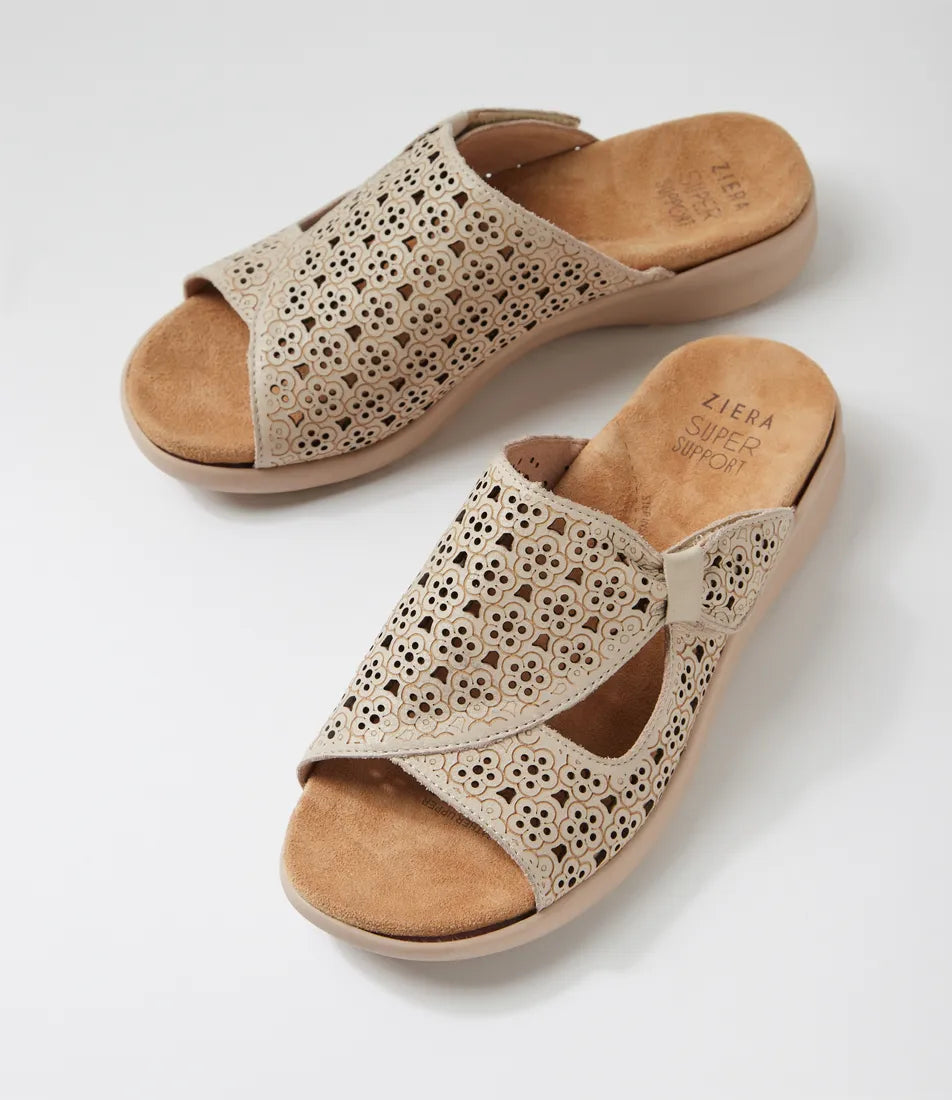 Slide into the unbeatable comfort of these leather sandals from Ziera. BINTY features a removable Super Support footbed that offers high arch support and a metatarsal bump that keeps your foot aligned to alleviate downward pressure. Available in Ziera's XW width, this style provides roomy comfort for work and the weekend.