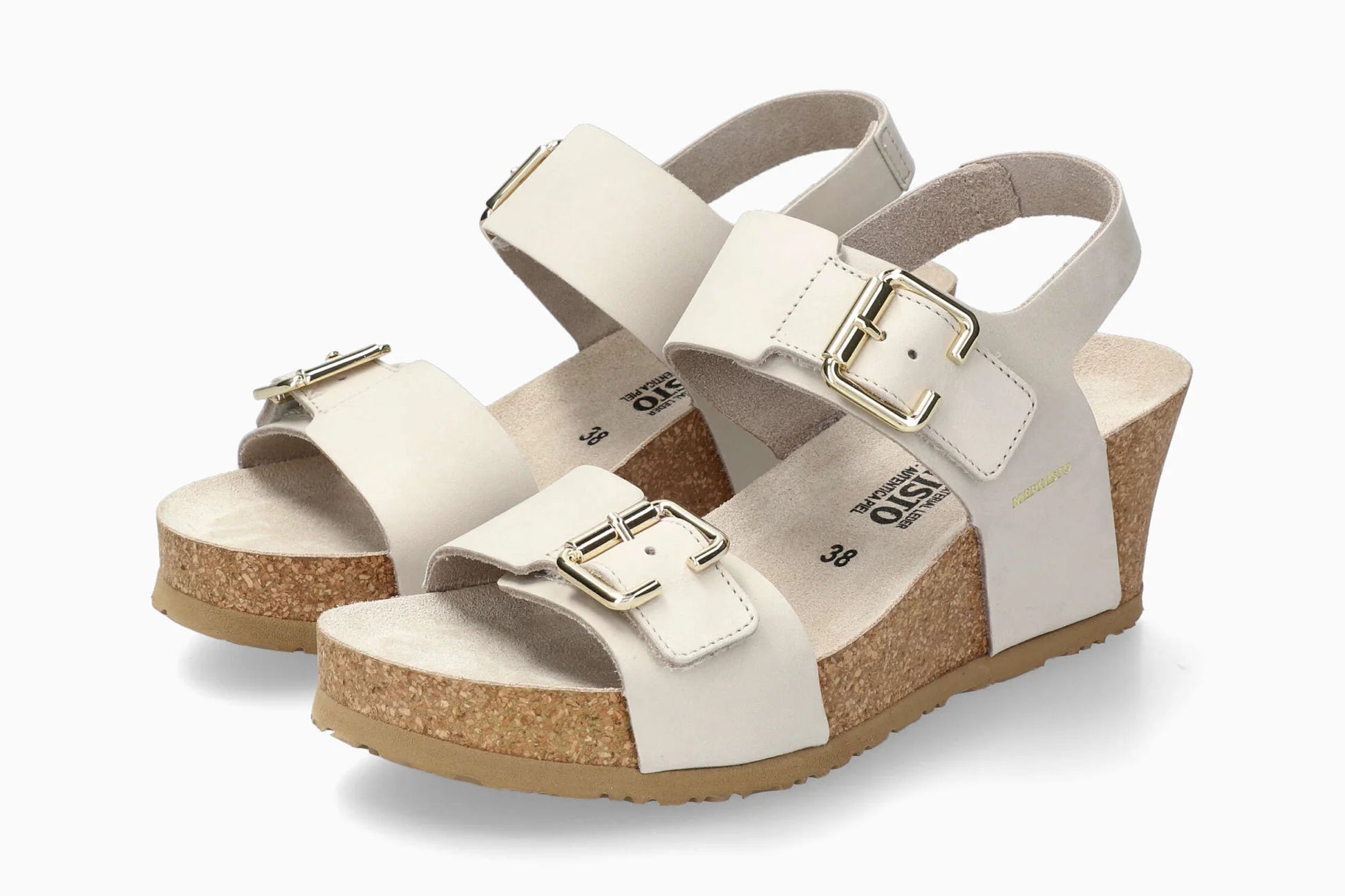 Sandales en liège pour femmes, cuir. Cette sandale légère pour femme est un must pour un été décontracté. La semelle en liège SOFT-AIR minimise l'impact pour une marche douce et sans effort. La technologie AIR-RELAX respecte l'anatomie du pied pour éviter les chutes de la voûte plantaire. Les brides adhésives réglables, avec boucles décoratives, assurent un confort parfait et un ajustement exceptionnel.