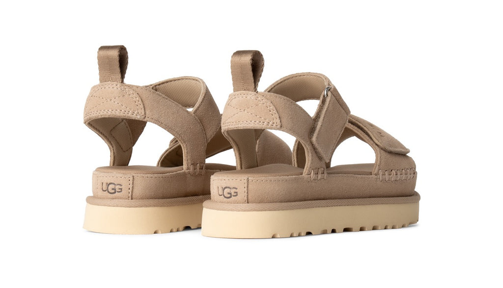 Vous êtes une étoile. Voici la Goldenstar. C'est un mariage parfait par temps chaud. C'est la sandale qui ressemble à une botte UGG® classique. Fabriquée en suède velouté, elle est dotée d'une assise plantaire en mousse ultra-douce et d'une semelle extérieure légère pour une utilisation tout au long de la journée. Deux jeux de sangles réglables permettent un ajustement précis pour des journées confortables. N'hésitez pas à rejoindre le club des fans de Goldenstar.